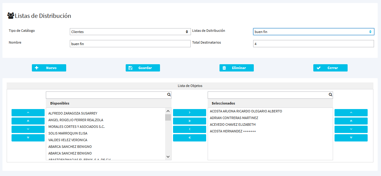 Las listas de distribución están enfocadas a crear diferentes listas ya sea para clientes o inventarios y así poderlas asignar a los diferentes tipos de avisos como lo son los siguientes.