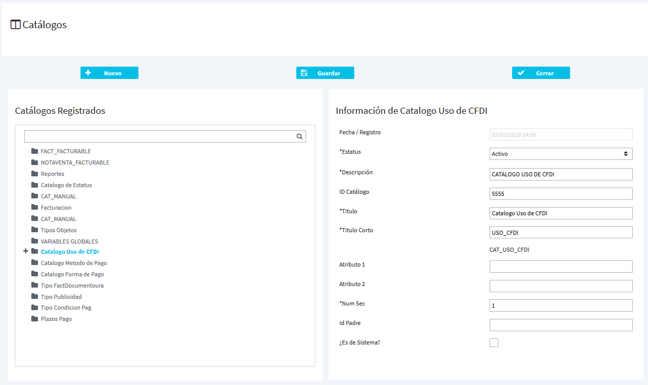 En WEICAPP se tienen varios catálogos internos que tienen valores asignados ya por default en el proceso de captura, en caso de requerir dar alta un nuevo concepto en algún catalogo interno, habrá que entrar al menú de catálogos y dar de alta el nuevo concepto requerido.